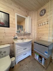 Очень уютный и удобный дом со всеми коммуникациями .280м общая площадь, 240 жилая. Участок 30 соток. Первая линия от леса4 этажа( 3 жилых+цокольный) 4 спальни, 2 санузла, гостиная, кухня- столовая, вторая столовая (можно переделать в 5 спальню) 3 этаж можно спланировать по вашему усмотрению. Есть терраса..Баня кв.м (сруб под крышей без внутренней отделки)Дом был построен для себя, продажа в связи с переездом. Материалы :1й этаж бревно кругляк обшит блокхаусом 322й этаж брус 150 обшит блокхаусом 32Внутри блокхаус 32. Ленточный фундамент. Септик. Колодец. Электричество 18квт, вода(горячая/холодная), 4 контура отопления.Торг.