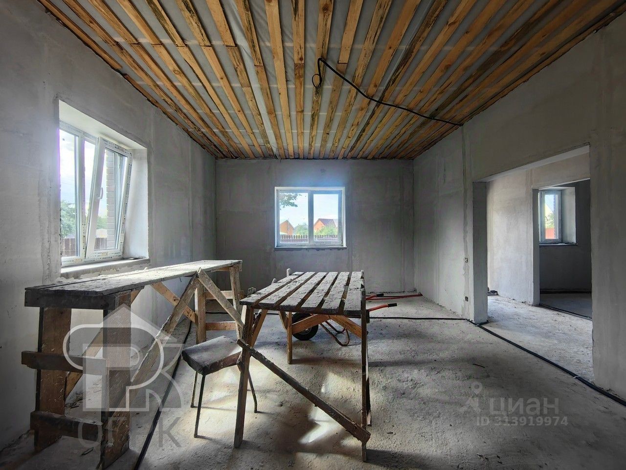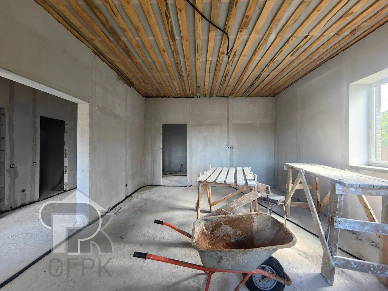 Дом достроен, осталось подобрать материалы внутренней отдели на свой вкус. Работы по чистовой отделке обсуждаются. В стоимость входят - окна, двери.
