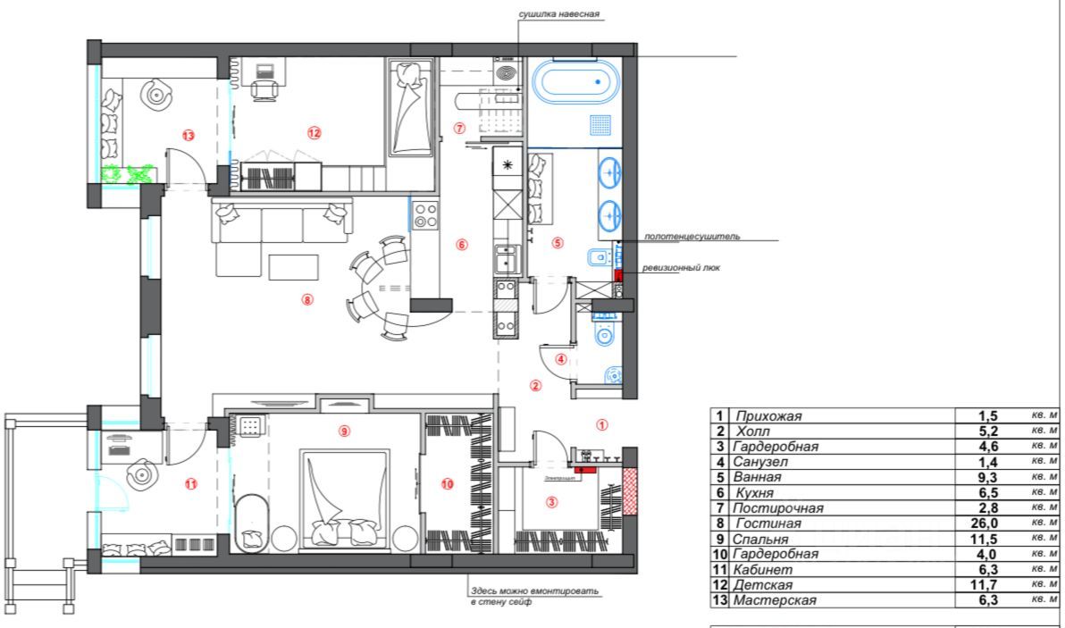 Закрытая территория, охрана, видеонаблюдение территории, в квартире и на парковочном месте.