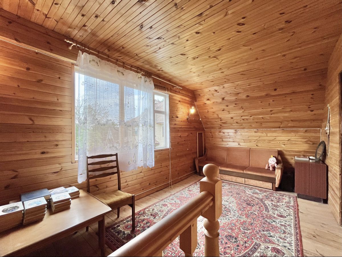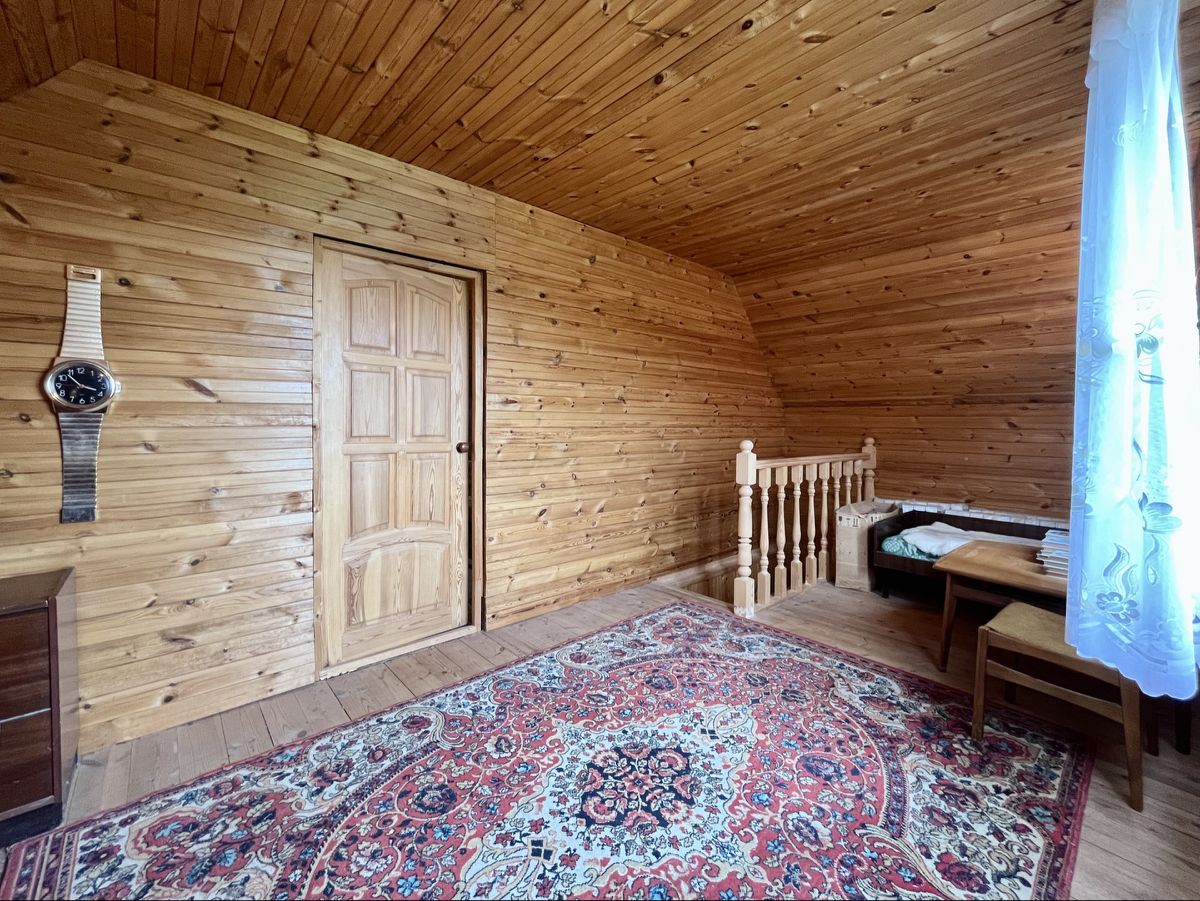 2 эт.дом - 140 кв.м. из бревна, обшит вагонкой внутри и снаружи. В оме 5 спален, гостиная, кухня, камин, печь. В доме все удобства, зимний водопровод, электричество 15 квт.,