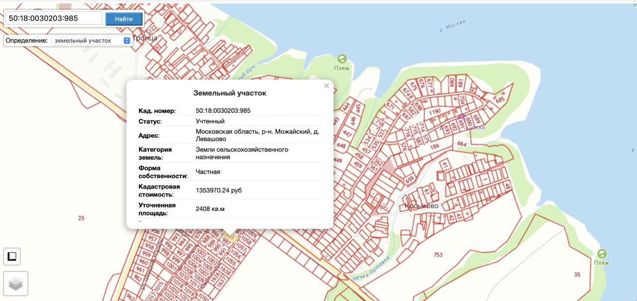 Кадастровый номер: 50:18:0030203:985 Форма участка — прямоугольная, идеально под строительство.