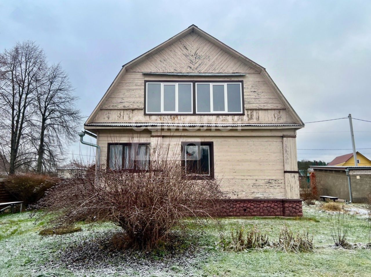 Жилой дом 111 кв.м., фундамент ленточный высокий, сухой, стены первого этажа - бревно, стены второго этажа - каркас. Межэтажные перекрытия деревянные, полы деревянные, стены внутри отделаны деревом, окна первого этажа деревянные, окна второго этажа пластиковые. Крыша из оцинкованного профлиста. Отопление в настоящее время от стационарных радиаторов. Сейчас дом используется в сезон с начала апреля до середины ноября. При установлении газового оборудования дом можно будет использовать круглогодично.