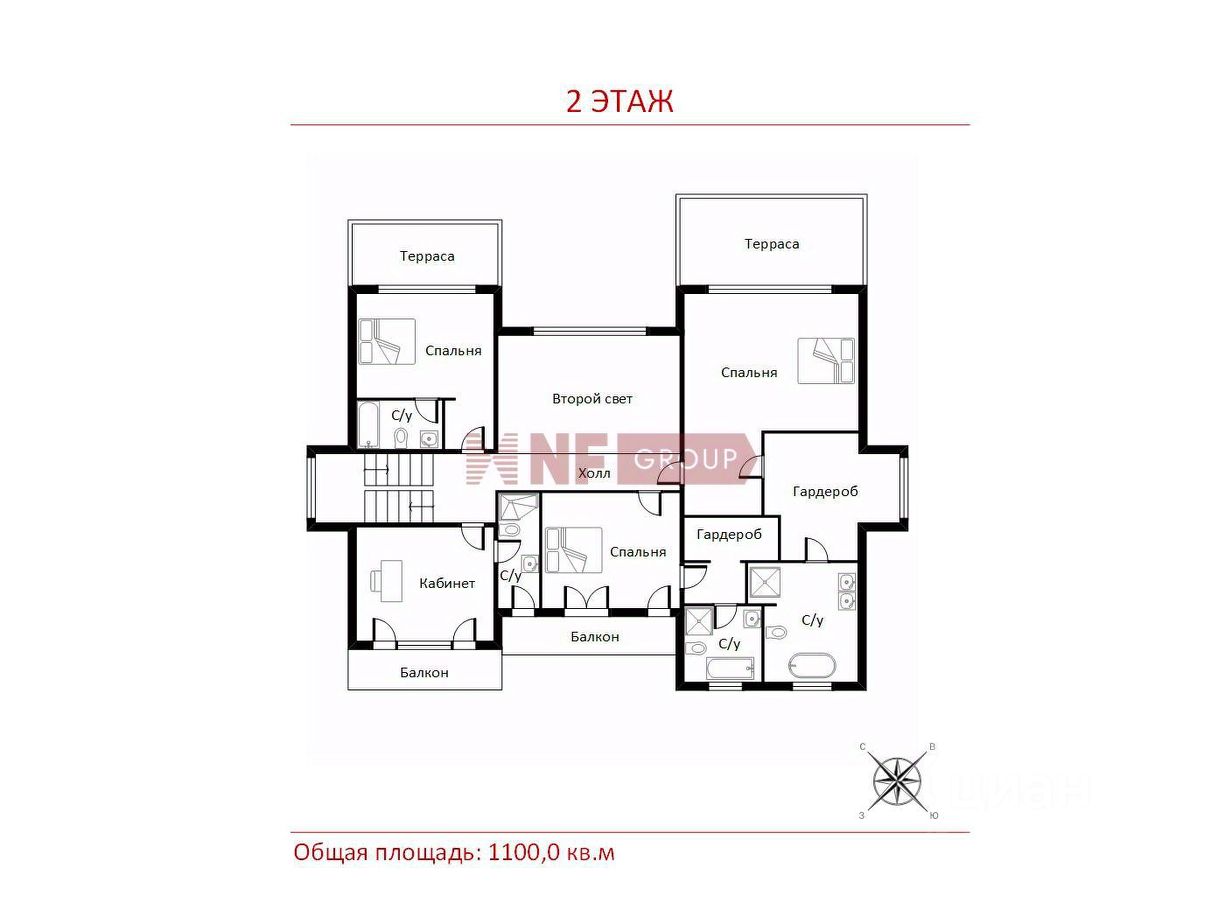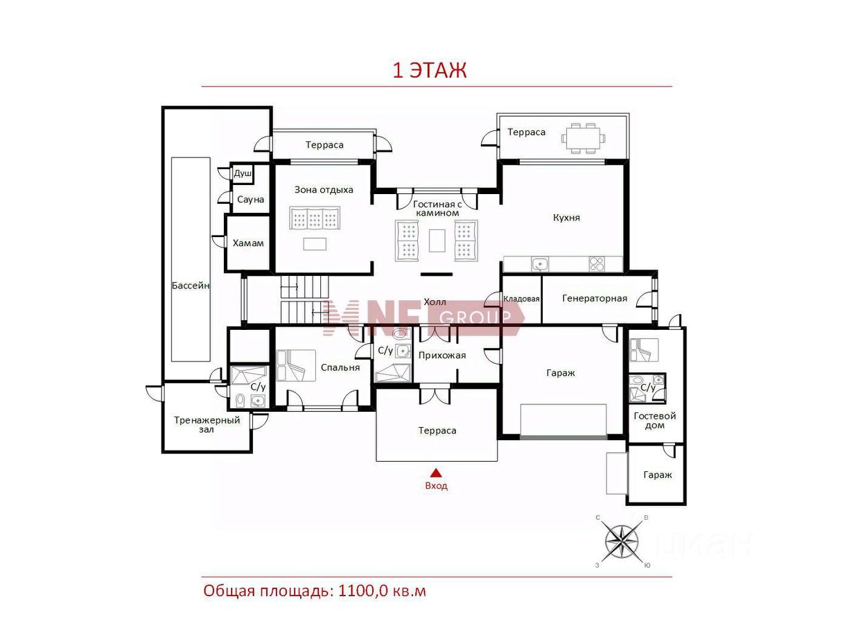 Общая площадь1100 м2