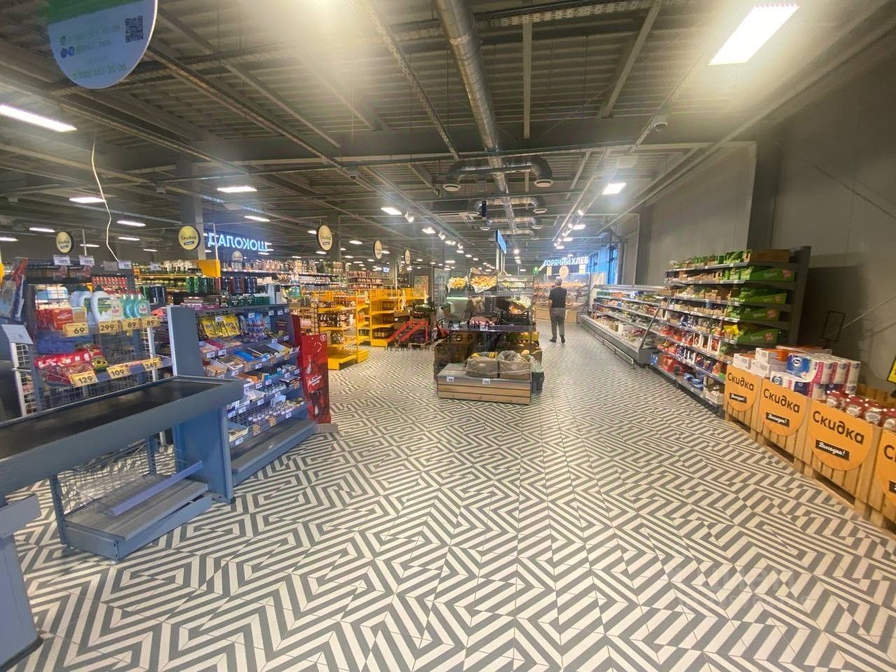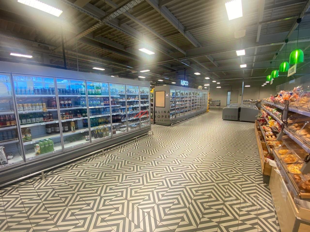 2. Торговая галерея: цветы, мясо, вина, пиво, аптека, пункт выдачи ''Ozon''.